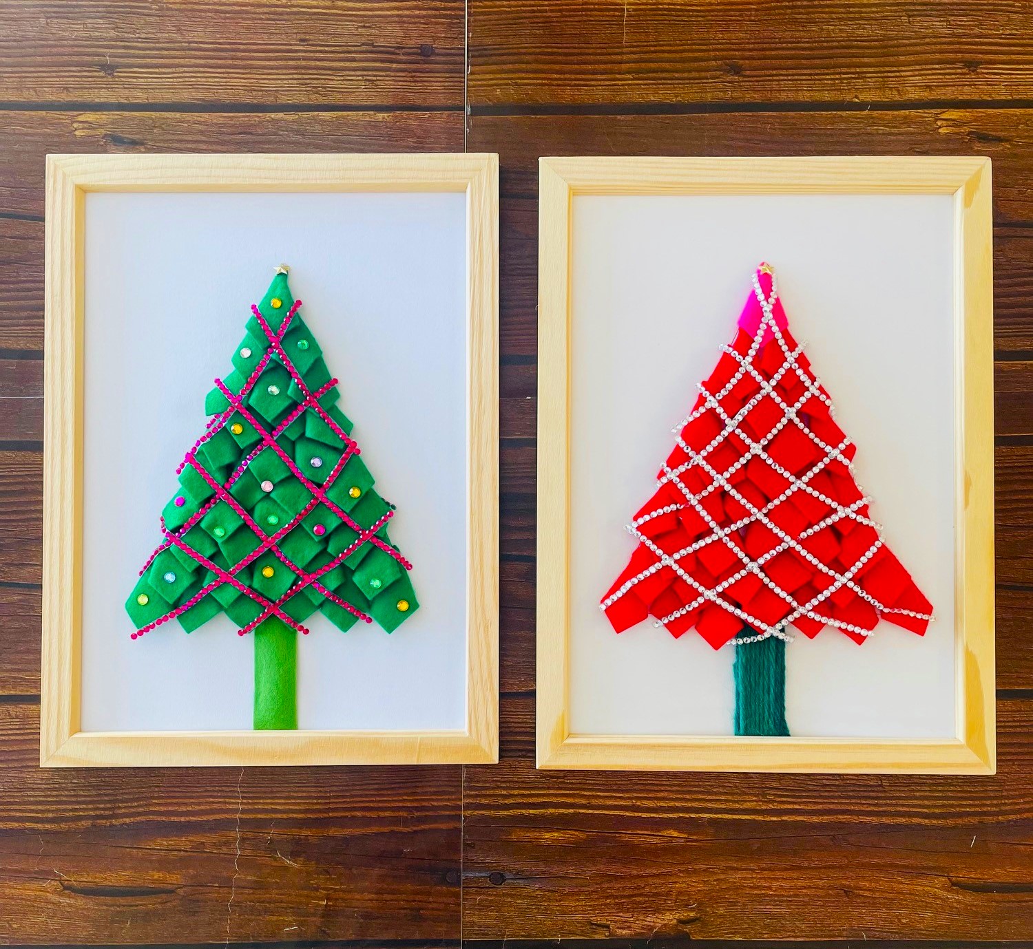 フェルトやリボンで簡単に可愛らしいクリスマスツリー(壁掛タイプ)を作ります。