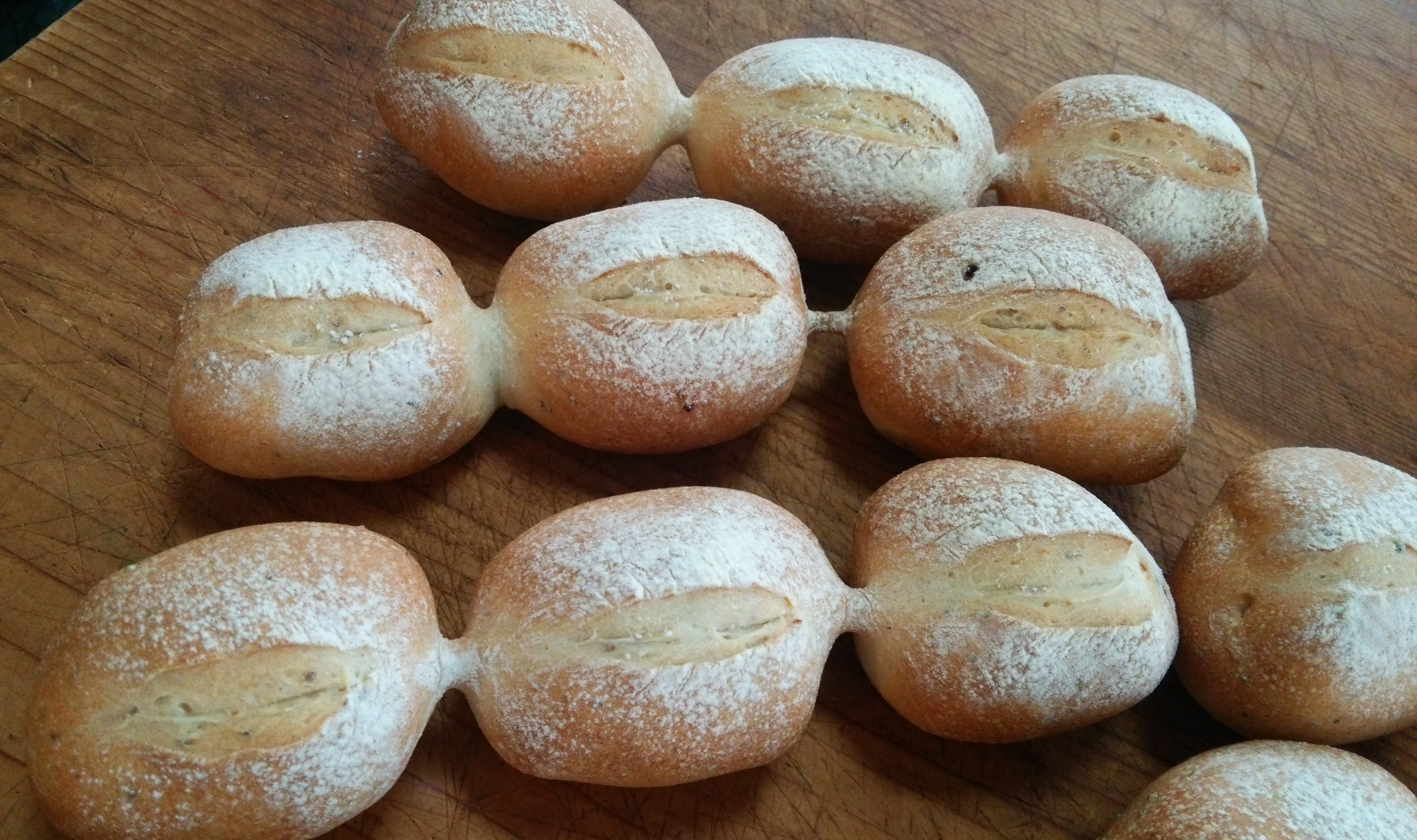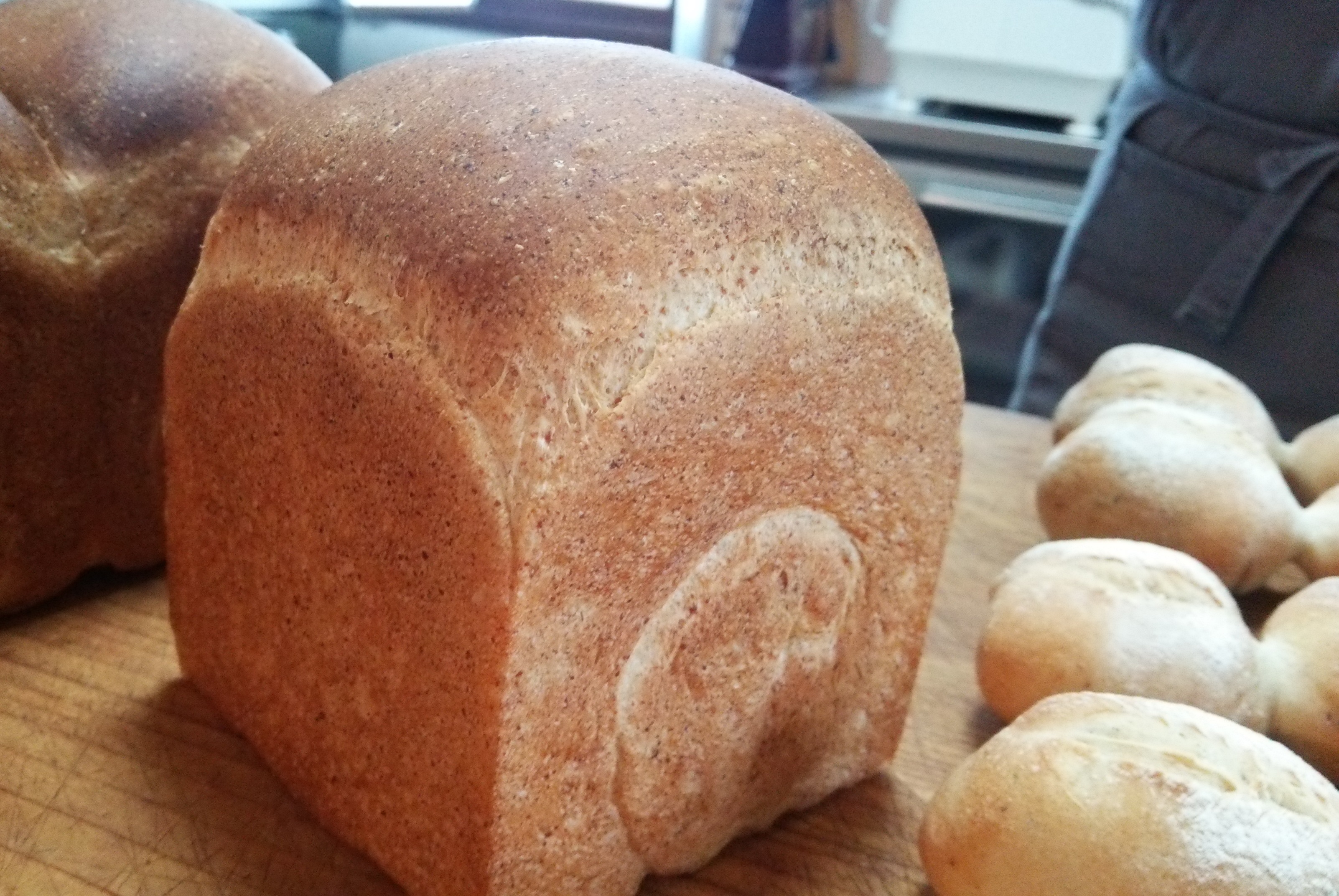 *ライ麦フレークを練り込んだ生地で、食パンとソーセージみたいなパンを手作りしましょう!!