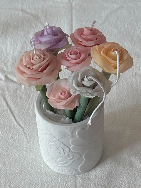 植物由来100%のワックスを使って本物みたいなミニローズキャンドルを5本作りましょう。