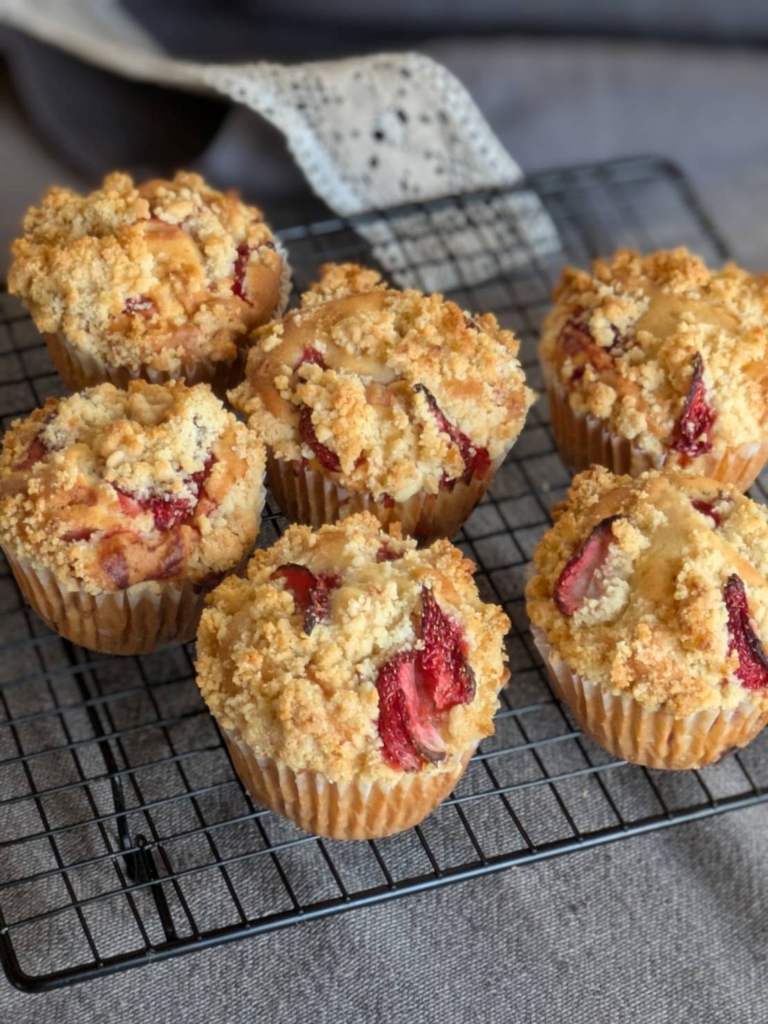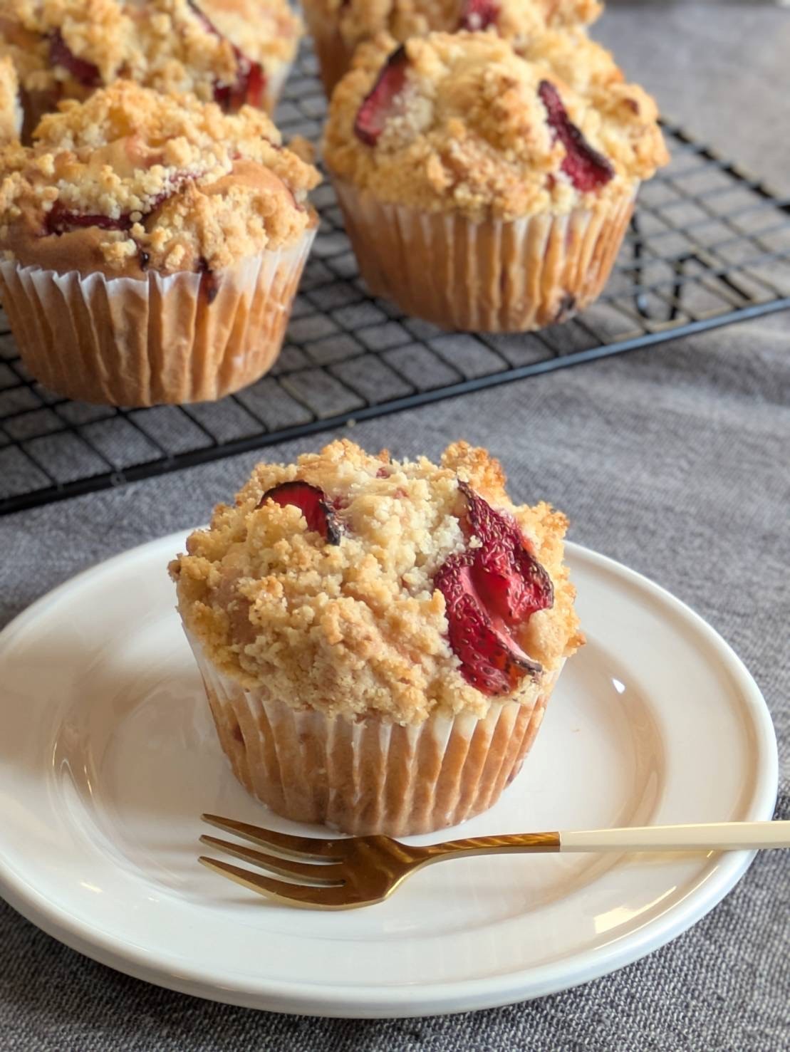 ミルキーな味わいの苺マフィンはクランブルをたっぷりのせて食感も楽しく