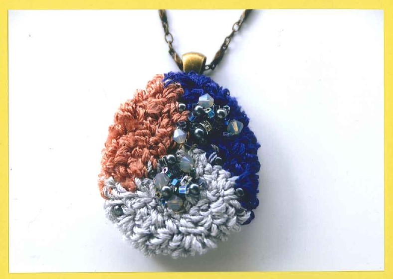 異なる素材( ビーズ・布・糸など )でパーツを作り、組み合わせた個性的なネックレスを作ります。