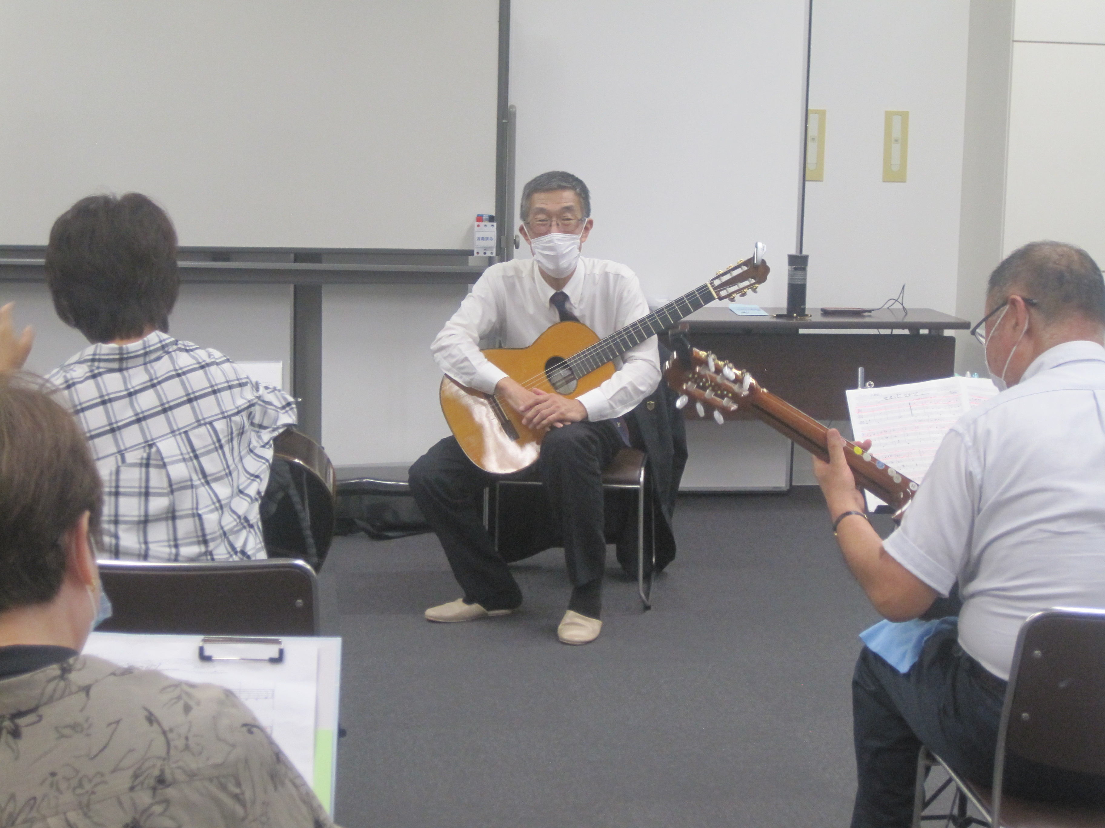 筆記用具、お持ちのギター、譜面台、足台