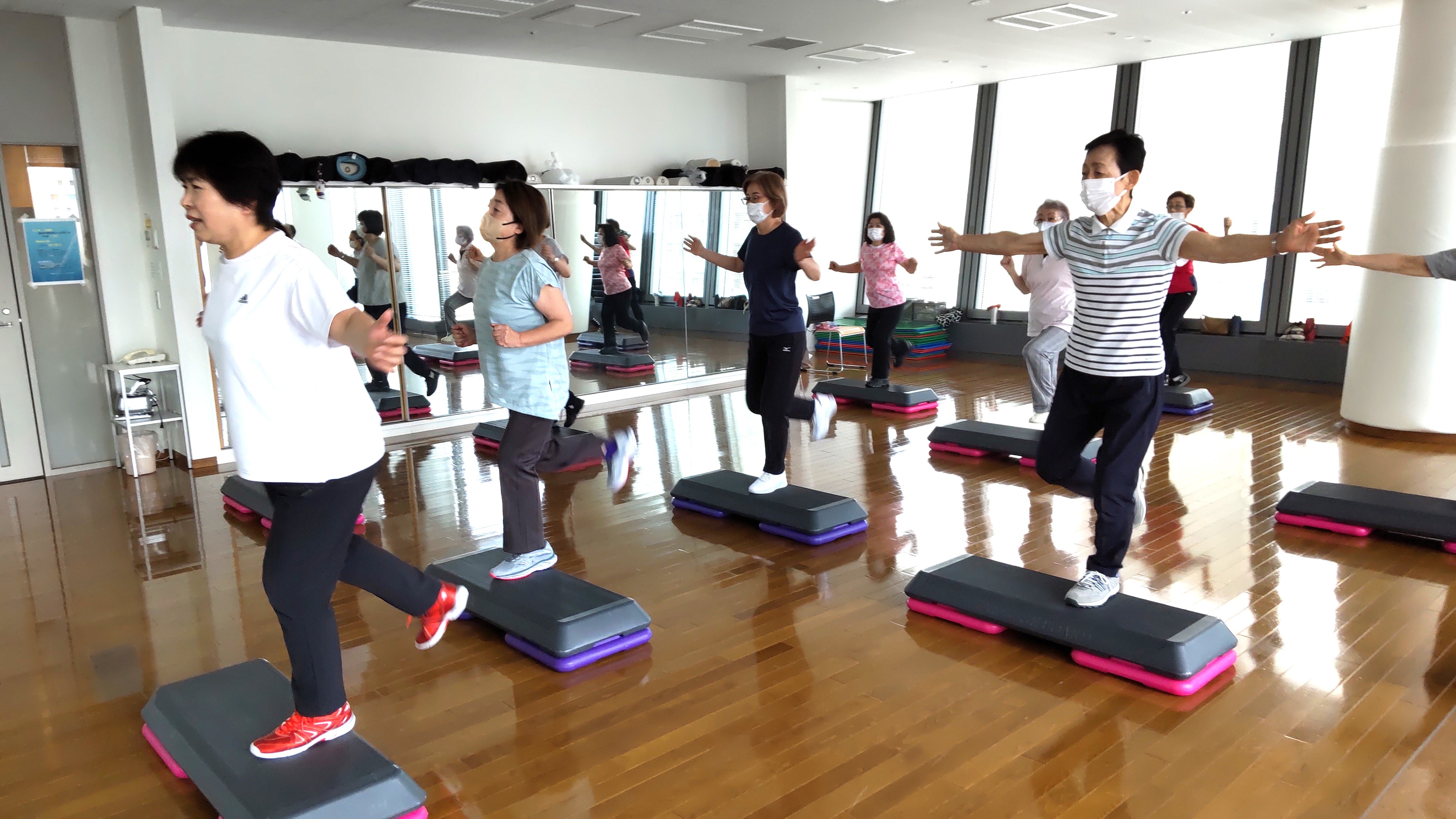 岩﨑正美 (公)JSCAマスター中高年期運動指導士)・小林享子(フィットネストレーナー)
