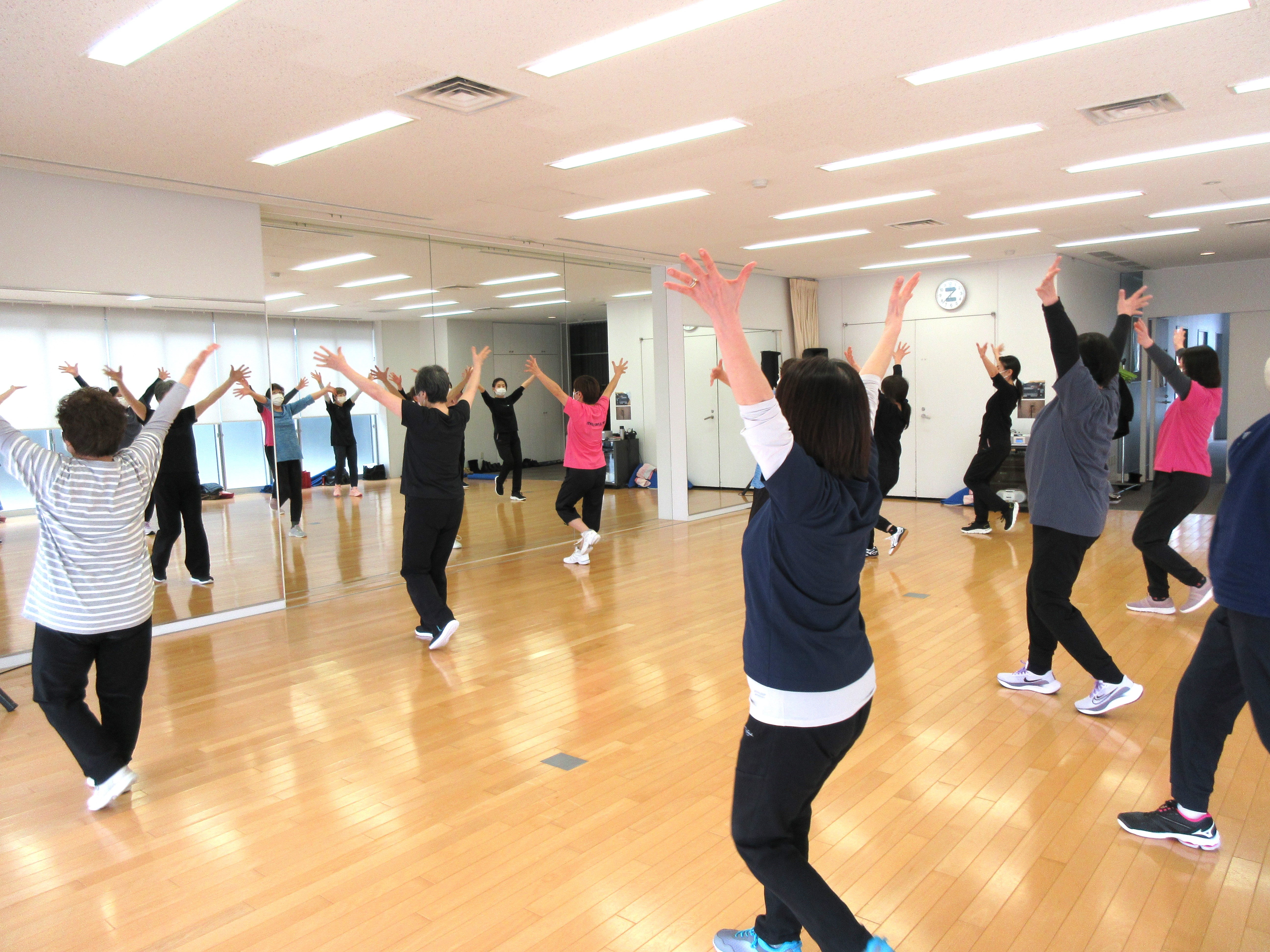 音楽にあわせて有酸素運動・筋トレ・ストレッチなどを行いながら