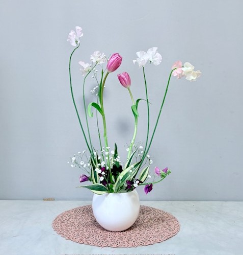 春の優しい色の花材を使い、ステキで可愛いお花を生けませんか。少人数クラスで初めての方でもお気軽に参加できます。お花に触れることで、心もリフレッシュしませんか。
