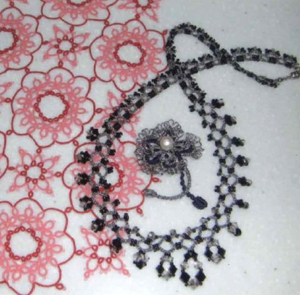 タティング・レースはシャトルと呼ばれる小さな舟型の糸巻きを使い2本の糸で結び目を作っていくレースです。華麗なドイリーからビーズを使ったアクセサリーやショールなどをつくることができます。