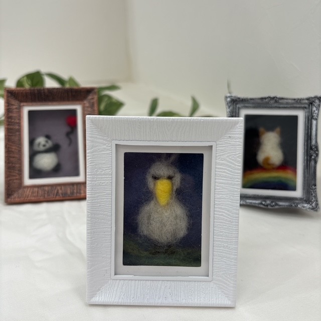 【me-gaco】羊毛フェルトで作る癒しのハシビロコウ(4月期)〜飾れるミニフレーム作品〜