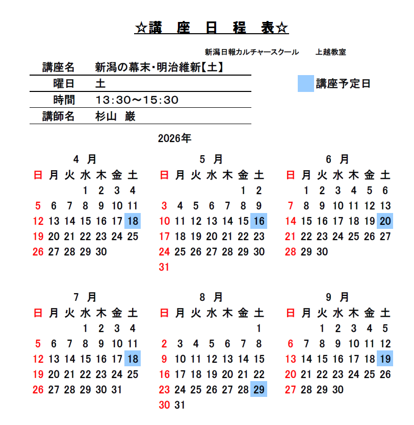 漢詩文でたどる新潟の幕末・明治維新《4月からの新設定期講座》